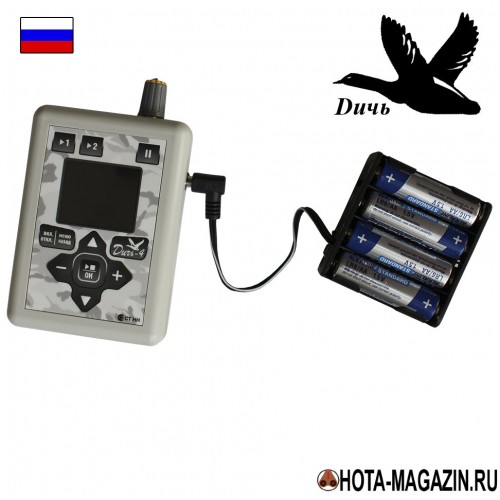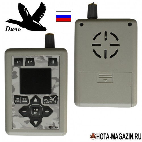 Электронные манки серии "Дичь" отличаются мобильностью и стильным дизайном, новая "Дичь-4" – не исключение. В корпус модели встроено удобное цифровое управление, т.е. кнопки не выступают как у предыдущей модели. Плавные линии корпуса и великолепное цветовое оформление, сочетающее белый и серый цвета, придают устройству впечатляющий внешний вид. Новый корпус исключает попадание пыли и брызг в устройство, надёжно защищает электронный манок во время использования.