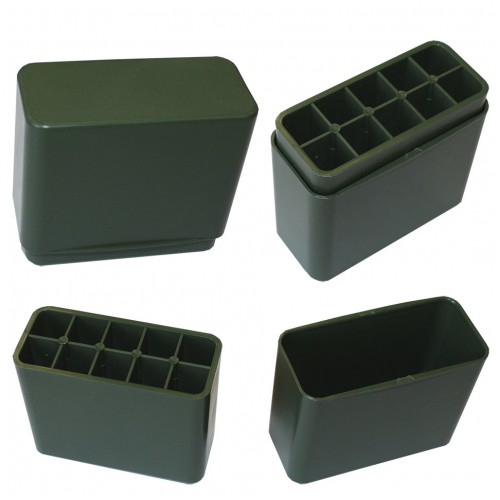 Коробка на 10 патронов для нарезного оружия MEGAline рекомендуется для хранения и транспортировки боеприпасов. Коробка на 10 патронов для нарезного оружия MEGAline обеспечивает сохранность и защищает боеприпасы от воздействия влаги, пыли, перепадов температуры и повреждений при падениях или перевозке. Прямоугольная форма дизайна из прочного пластика устойчивого к ударам с индивидуальными ячейками вместимостью на 10 патронов для нарезного оружия для разных калибров. Коробка на 10 патронов для нарезного оружия MEGAline состоит из 2 частей: основание с ячейками (9x9 мм.) и крышка.