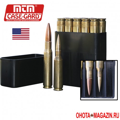 Коробка на 10 патронов для нарезного оружия MTM 50 BMG Slip-Top Ammo Box создана специально для использования оружия с калибрами 50 BMG, 50 DTC, 460 Steyr, HS 460, 416 Barrett по просьбе стрелков использующих оружие только для точных выверенных выстрелов (охота, снайперские соревнования). Специальная подставка обеспечивает посадку боеприпасов без касания пуль и капсюлей (защита от повреждений и случайной детонации) - патрон висит на сужении гильзы.