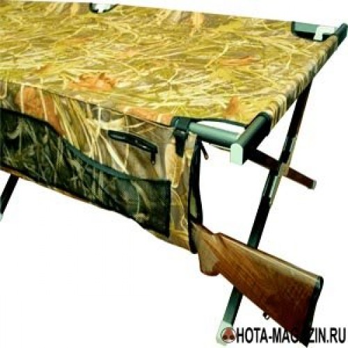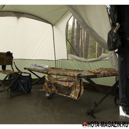 Компактная и удобная кровать разработана специально для охотников и рыбаков. На кровати есть специальный карман для ружья или удочки. Кроме того, на кровати есть уникальный карман-подушка. Если в карман сложить мягкие вещи, то получится удобная подушка для сна.