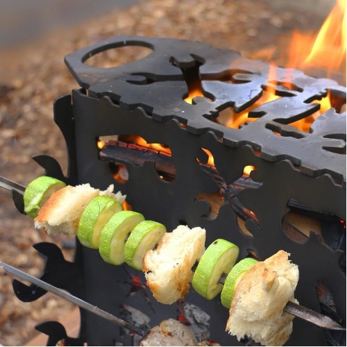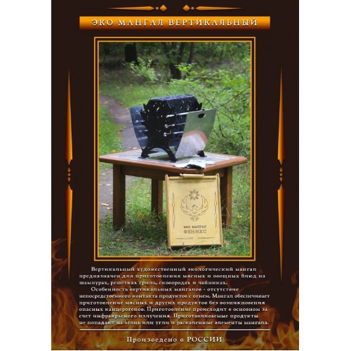 Мангал вертикальный МОТОР с уникальным дизайном конструкции предназначен для приготовления мясных и овощных блюд на шампурах, решетках гриль, сковородах и чайниках. Особенность вертикальных мангалов - отсутствие непосредственного контакта продуктов с огнем, обеспечивает приготовление мясных и других продуктов без возникновения опасных канцерогенов. Приготовление происходит в основном за счет инфракрасного излучения. Частицы пищи не попадают на огонь или угли и раскаленные элементы мангала. Шампуры расположены горизонтально, жар от дров или углей воздействуют сбоку Мангала.
