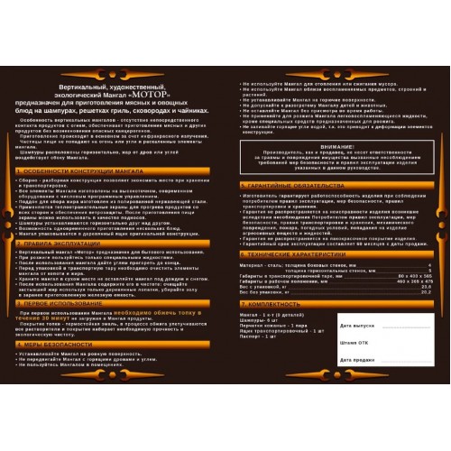 Мангал вертикальный МОТОР с уникальным дизайном конструкции характеристики: