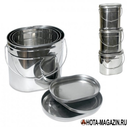 Набор котелков из нержавеющей стали состоит из 3 котелков объемом: 10, 12, 16,5 литров и подходит для приготовления пищи на огне. Можно одновременно готовить разные блюда ориентировочно на группу из 12–15 человек. Вес набора котелков 4,95 кг., материал – нержавеющая сталь AISI 304. Набор котелков из нержавеющей стали (10 + 12 + 16,5 литров) выпускается в 2 вариантах: крышка без ручек, крышка с ручками (можно использовать как сковородки). На котелках установлены прочные ручки, по желанию самостоятельно замените ручки на тросик. сварные швы выполнены в аргоновой среде без применения электродов или флюсов.