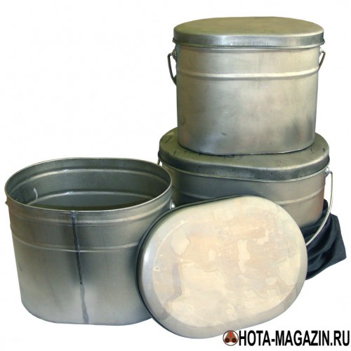 Практичный набор котелков из титана. В набор входит три котелка с крышками (крышки без ручек). Объём котелков: 6,5; 5; 4 литра. Котелки очень компактно складываются в матрёшку. Набор упаковывается в чехол. Изготовлен из титана ВТ1-00.