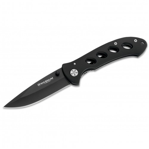 Нож складной с фиксатором BOKER Magnum Shadow карманный вариант ножа BOKER являющийся одним из самых популярных в ассортименте. Черное покрытие клинка из стали 440A с фиксатором Liner Lock. Удобное раскрытие большим пальцем с помощью специального упора. Клипса для ношения на ремне. Легкая рукоять из алюминия черного цвета со специальным дизайном в тактическом стиле с отверстиями для уменьшения веса без потери прочности. Отверстие для темляка.