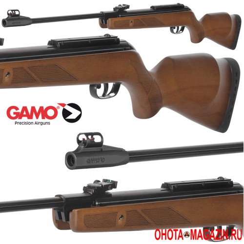 Пневматическая винтовка с деревянным прикладом GAMO Hunter 440 недорогой вариант пружинно-поршневой винтовки классического дизайна с переломным взводом. Пневматическая винтовка GAMO Hunter 440 создана для начинающих стрелков для ознакомления и ввода в мир знаний оружия и стрельбы. Пневматическая винтовка GAMO Hunter 440 нарезной ствол из оружейной стали, приклад и ложе из качественной натуральной деревесины бука. Подщечники на ложе располагаются с двух сторон - симметричное ложе приклада подойдет для левши и правши. Пневматическая винтовка GAMO Hunter 440 оборудована амортизатором снижения отдачи после выстрела в виде тыльника приклада из резины. Хорошая кучность стрельбы и мощность выстрела обеспечивают точность попаданий. Спусковой механизм курка регулируется индивидально под нужды владельца винтовки GAMO Hunter 440. Ручной предохранитель защищает от случайных выстрелов. Пневматическая винтовка GAMO Hunter 440 оснащена мушкой и регулируемым целиком с оптоволокном (фиброоптические нити) для улучшения точности прицеливания в условиях недостаточной освещенности (сумерки, пасмурная погода, слабое освещение в тире).