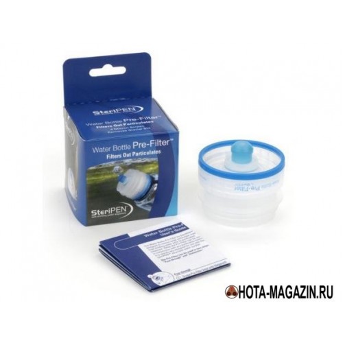 В SteriPEN фильтр предварительной очистки воды подходит для бутылок с широким горлом.Отфильтровывает твердые частицы и мусор. Для использования, залить воду через прочный сетчатый фильтр-картридж 40×40 микрон, чтобы заполнить бутылку. Теперь вода готова для очистки воды УФ-обеззараживателемь SteriPEN. Извлеките сетчатый картридж из корпуса пре-фильтра, вставьте SteriPEN в центр корпуса фильтра, переверните флакон и взбалтывают воду до тех пор, пока индикация не известит о завершении процесса