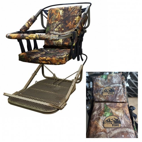 В комплекте есть все необходимые для подъема и крепления приспособления, тросы. Рассчитан для деревьев диаметром от 23 до 51 см. Сидение выполнено из бесшумных материалов и легко поднимается для стрельбы из положения стоя. Габариты 98х62х30 см.