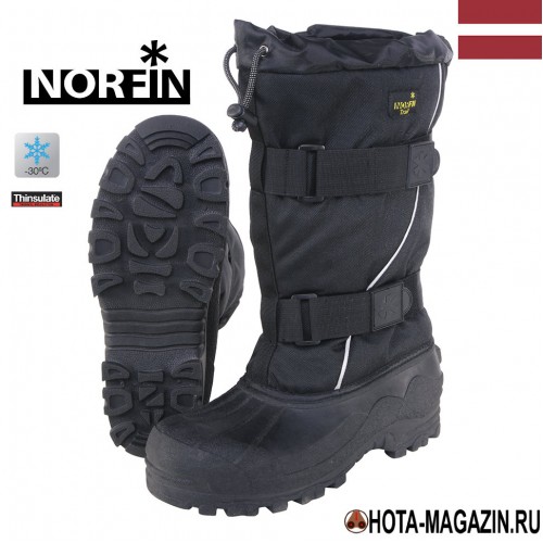 Сапоги для зимней рыбалки Norfin изготовлены из прочного материала, обеспечивают термозащиту в динамике при температурах до -30°С. Для удобства и разгрузки мышц ног при длительной ходьбе на голенище сапоги для зимней рыбалки имеются 2 регулируемые стяжки с замками. Верх сапога имеет защиту от снега с кнопочным фиксатором. Вынимаемые вкладыши толщиной 9 мм. Обеспечивают надёжную термоизоляцию. Полипропиленовый слой отводит влагу и удерживает тёплый воздух. Подошва из прочной термопластичной резины сохраняет эластичность при отрицательных температурах, а её протектор препятствует скольжению.