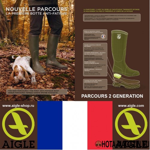 Подошва Actigrip создана фирмой AIGLE по уникальной технологии с учётом 150-летнего опыта производства сапог из каучука. Результатом столь долгих изысканий стала подошва, обладающая исключительной эластичностью (подошва-амортизатор), твердостью, устойчивостью, а главное она не скользит. Сегодня эта технология используется в линейке сапог Parcours, которая сочетает все различные комбинации последних новаций. Эти подошвы в сочетании с разным протектором (как правило, само очищающимся при ходьбе) обеспечивают уверенность в движении даже на скользких камнях покрытых илом.