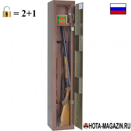 Оружейные сейфы ( шкафы ) на 2 ружья. Отделение запираемое на замок.Отделение имеет поднутрение позволяющее ставить ружья на всю высоту сейфа.Корпус и дверь сейфа выполнены из 2 мм стали. На дне коврик под приклад.Под цевье предусмотрены пластиковые ложементы исключающие царапины и потертости на оружии. Два сувальдных замка повышенной секретности. Покраска полимерная-медно бронзовый антик. Сейфы удовлетворяют всем требованиям предъявляемым МВД к хранению оружия физическими лицами.