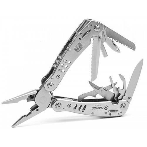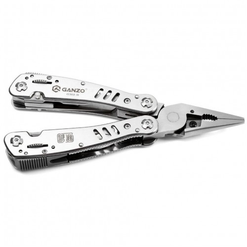 Складной нож с инструментами Ganzo G302-Н это мультитул на основе уже известной модели от бренда Ganzo. Однако изменения коснулись не только обработки металла, но и внешнего вида некоторых инструментов. В итоге, покупатели получили еще один прекрасный образец практичного инструмента, пользу которого каждый владелец сможет оценить на практике. Все инструменты, как и корпус мультитула Ganzo G302-Н, сделаны из стали 440С нержавейка. Он вполне может использоваться в условиях частого контакта с водой, какие характерны для туристических походов, поездок на рыбалку и охоту. Минимальный уход за инструментом обеспечит ему долговечность и сохранность внешних качеств. Главный по принципу расположения инструмент мультитула это плоскогубцы. Они также наделены функцией кусачек и возможностью крепкого захвата гаек, втулок и других круглых в сечении предметов. Остальные инструменты распределены между двумя рукоятками мультитула и размещены внутри них. Это два ножа (обычный и серрейторный), пила, открывалки для консервов и бутылок, ножницы, шило, небольшая отвертка с прямым шлицем, магнитный держатель для сменных бит, инструмент для снятия с проводов изоляции. Вместе с мультитулом продается и набор необходимых для работы с различными винтами и шурупами отверток. Они размещены в одном общем органайзере. Этот органайзер вместе с мультитулом может храниться в одном нейлоновом чехле. Поверхность всех инструментов и рукояток хромированная. Мультитул очень добротный на вид и практичный на практике, а потому станет отличным приобретением как для собственного использования, так и в качестве полезного подарка.
