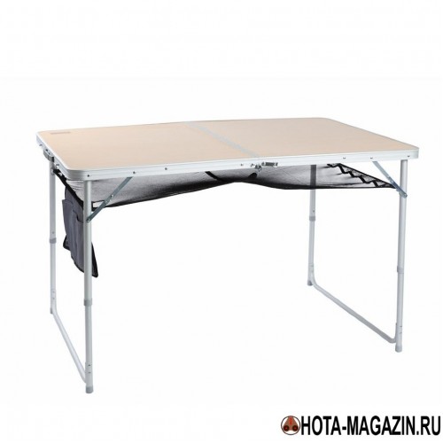 Стол для компании 6-8 человек. Идеален для тех, кто предпочитает выезжать на природу на автомобиле. В сложенном виде не занимает много места в багажнике, поэтому идеально подойдет для тех кто любит отдых на природе с комфортом. Удобная ручка для переноски. Стол легко моется. Просто собирается. Легкий и прочный стол с каркасом из алюминия и столешницей из прочного фибролита, который легко моется и не боится механических повреждений. Под столешницей функциональная сетчатая полочка, с кармашком для мелочей.